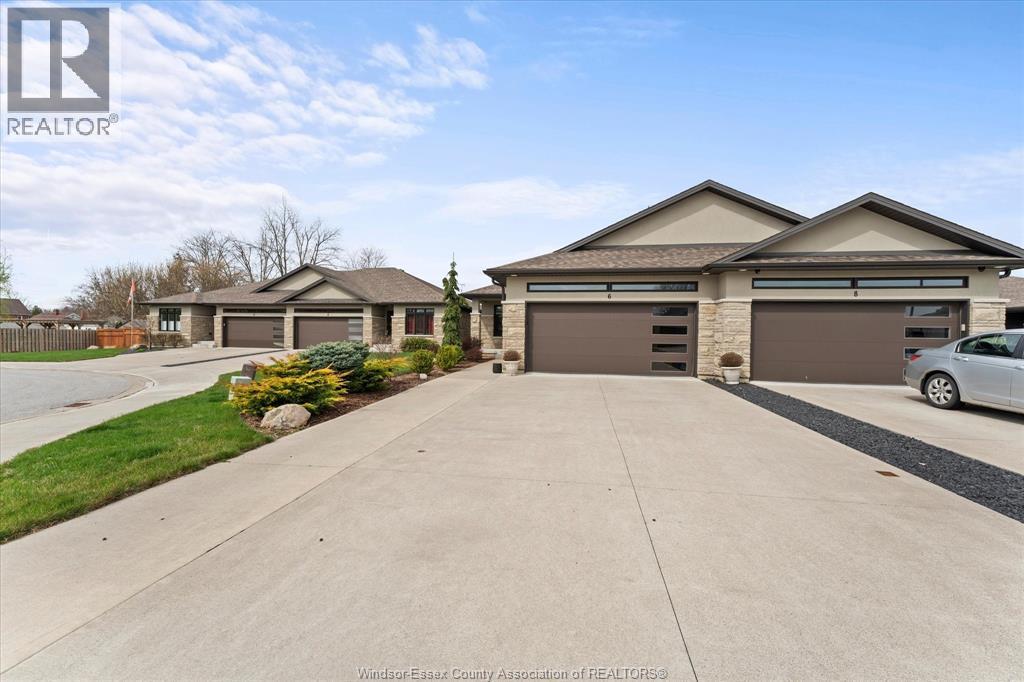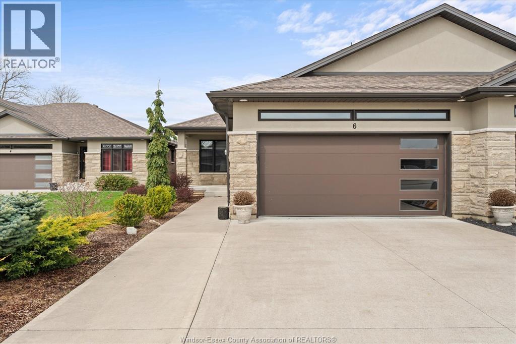 Welcome to easy living at 6 Holly in beautiful Kingsville! This immaculate ranch townhouse features a bright, open-concept layout with gleaming hardwood floors and a cozy fireplace in the living room. Modern kitchen with beautiful granite counters and tons of cabinet space. The main floor offers ultimate convenience with two spacious bedrooms, including a primary suite with a private ensuite, plus a dedicated laundry room. The space continues into a fully finished basement, providing ample room for guests, a home office, extra bedroom, loads of storage totaling three full bathrooms throughout the home. Complete with a two-car garage, double-width driveway, and a covered rear patio. This move-in-ready property is just minutes from Kingsville's renowned restaurants, wineries, and waterfront. (id:4555)